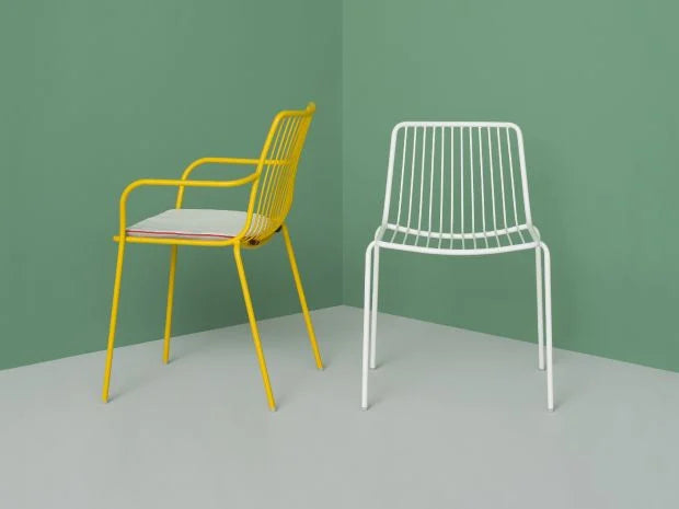 Nolita is an outdoor seating family that recalls the origins of a historic journey that Mario Pedrali began in 1963 with his first metal garden chairs. Armchair with high backrest, structure in epoxy-coated steel tube for outdoor use.