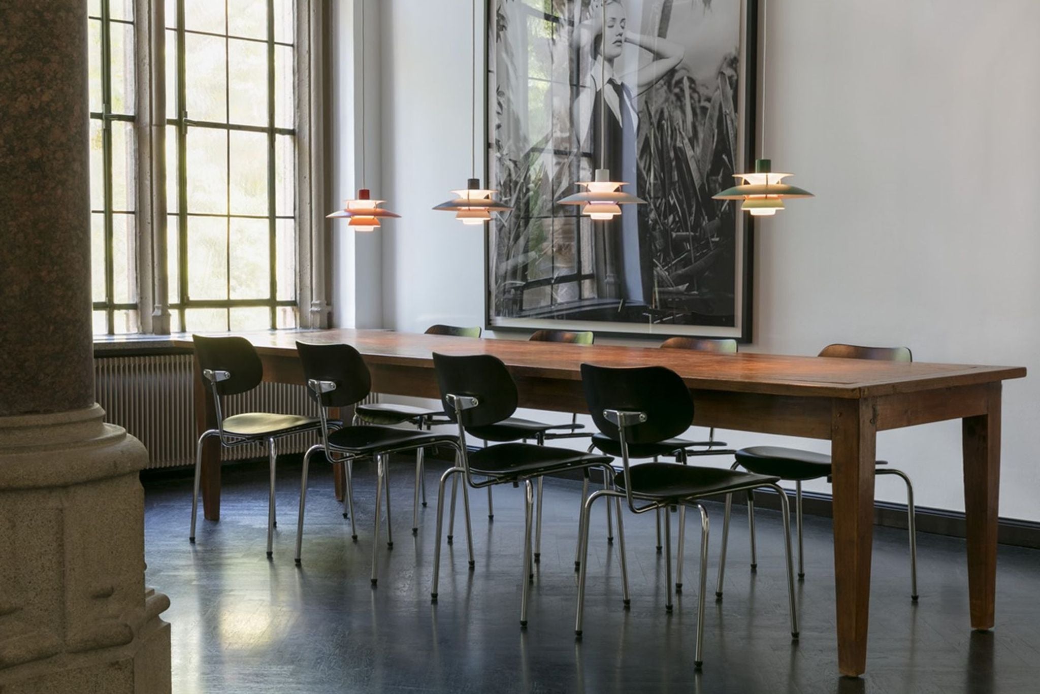 The PH 5 Mini by Louis Poulsen is a sophisticated lighting solution designed to provide 100% glare-free light. Its reflective shade assembly directs light downward and to the sides, creating a warm and inviting ambiance. Crafted with meticulous attention to detail, this lamp is perfect for luxurious interiors, adding a touch of elegance and refinement. Its timeless design and high-quality materials make it a statement piece in any upscale home, blending functionality with aesthetic appeal.